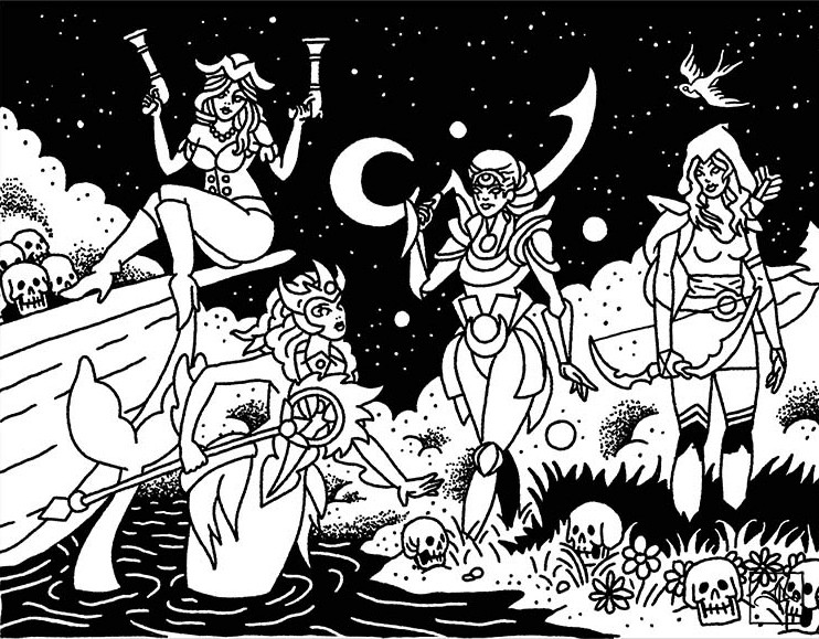 I did the drawing digitally (which is entirely is own process) until I was happy with the composition, line work, positive and negative space (and I did some color testing before I started painting). Digital rendering pictured below.