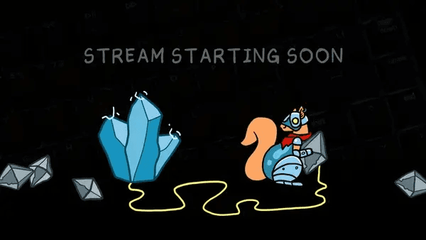 Looping intro screen, outro screen, and runner squirrel for AFK moments on her twitch stream.
